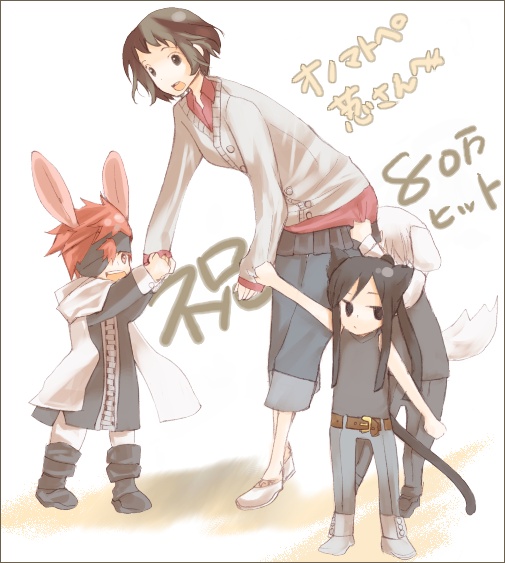 ----------------------------------- なん……だと……!? 耳尻尾が3匹……!! ついったでおねだりしてみたら、なんとあの!のべらぜのせいさんがにゃんわら大集合を描いてくださいましたー!! 何なの、この、それぞれの特徴をとらえまくった絵は!せいさんはうちのサイトをご存じないはず! それなのに、少し読んだだけでこんなに的確に描けてしまうせいさん……さすがです。 というか、超有名な憧れのサイトの管理人さんに描いて頂ける日が来るなんて、夢にも思っていませんでした。 見てください、この甘えたならびっと! 表面上は(人目があるから)甘えないけど、しっかりヒロインの手を握っているにゃんだ! そして、極めつけは。ヒロインの腰にしがみついて離れないわれん!! 正直、われんに一番悶えました。すいません。 せいさん、どうもありがとうございました!幸せ! |